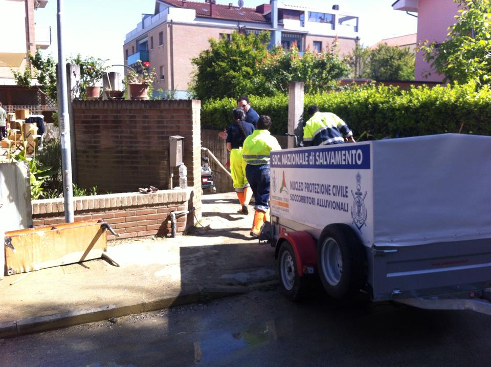 Senigallia – Dalla prima mattina di sabato 3 maggio, la zona di Senigallia (AN) è stata colpita da 120 millimetri di pioggia che, in poche ore, ha causato lo straripamento del fiume Misa. Una vera e propria alluvione ha colpito la città: auto travolte, abitazioni, scantinati e garage allagati. La violenza dell’acqua ha provocato anche due vittime.I volontari della Società Nazionale di Salvamento Sez. di Senigallia, diretta da Severino Tricarico, sono entrati in azione, prestando la loro opera a favore della popolazione. Sono stati impiegati 2 pick up e 2 pompe idrovore della SNS.