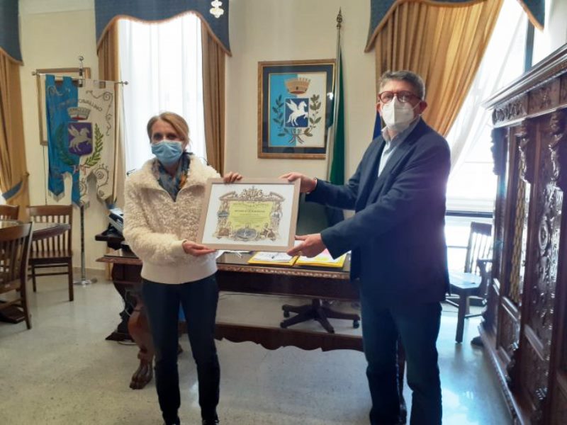 Cavallino, 12 Marzo 2021 – Nella mattinata di Venerdì 12 Marzo sono stati consegnati due attestati di benemerenza, presso la sede del Comune di Cavallino (LE) a Mauro della Valle e Lucia Calabrese, a testimonianza dell’ ”encomiabile spirito di sacrificio ed incondizionato impegno, assicurando la necessaria assistenza alla popolazione colpita da pandemia di coronavirus”. La premiazione, organizzata dalla Società Nazionale di Salvamento e sposata dall’amministrazione Comunale di Cavallino e in particolare dal Sindaco Avv. Bruno Ciccarese e dall’assessore alla Sanità Prof.ssa Pamela Manno si è svolta nell’ufficio del primo cittadino. L’amministrazione ha sottolineato quanto, soprattutto in questo periodo, sia importante la collaborazione tra tutti i cittadini. La prestigiosa Benemerenza Nazionale, concessa dal Presidente, Professor Giuseppe Marino, per tramite della SNS Sezione di Otranto, diretta da Massimo Donno, viene concessa a un numero limitato di soggetti che si sono distinti per particolari meriti.