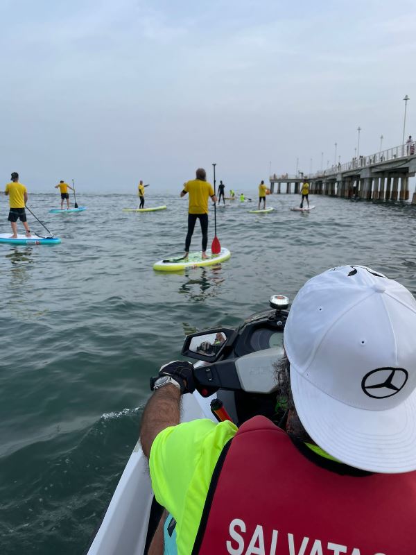 Già dal pomeriggio i volontari SNS conducendo 2 moto d’acqua di Salvataggio e ben n. 12 Sup (stand up paddle) hanno garantito la sicurezza e la salvaguardia dei 45 Paratleti e successivamente dei 450 atleti, la gara è terminata al tramonto senza alcun incidente.