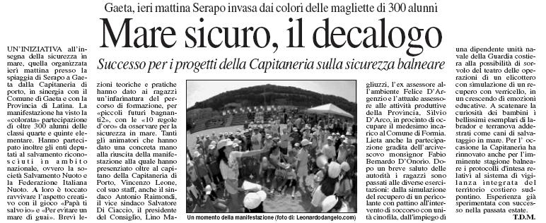 So di aver fatto il possibile, e so che non è stata colpa mia, ma non basta. Ti spiegano che una mamma giocava con il suo bambino troppo vicino alle onde, il bimbo è scivolato e la corrente l’ha portato via. Così la mamma si è buttata e entrambi hanno avuto difficoltà a rientrare. Qualcuno si è buttato, anche quel ragazzo, Paolo. E vedendo lui in difficoltà, anche la sua fidanzata. Qualunque sia il motivo per cui è successo, ciò che conta è che non tornerà più. Credi di aver superato la cosa, il giorno dopo riprendi il tuo posto e pensi a fine turno che un altro giorno è passato… ma sempre con la paura che possa succedere ancora. Paura non per te, ma per gli altri, che a volte mettono a repentaglio anche la tua vita. E così fino a fine stagione. I suoi occhi, il suo tatuaggio, le onde, quel giorno ormai passato non li dimenticherai più.