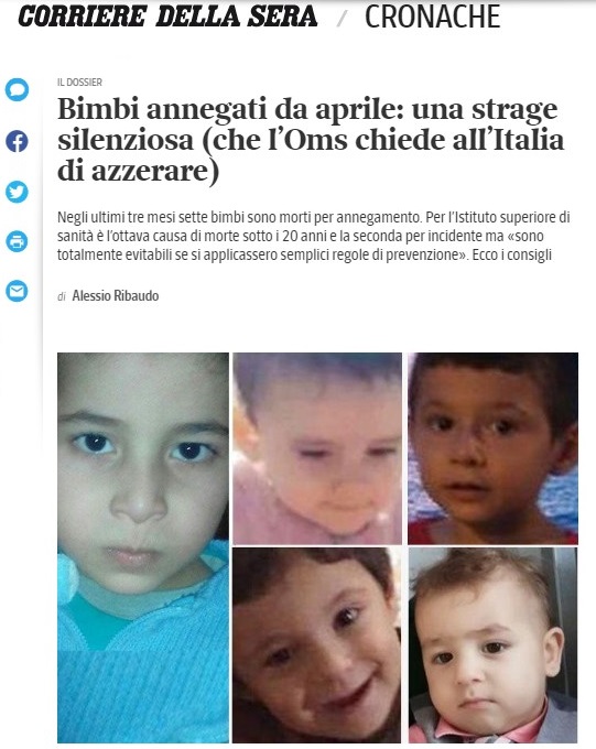 Negli ultimi tre mesi sette bimbi sono morti per annegamento. Per l’Istituto superiore di sanità è l’ottava causa di morte sotto i 20 anni e la seconda per incidente ma «sono totalmente evitabili se si applicassero semplici regole di prevenzione». Ecco i consigli