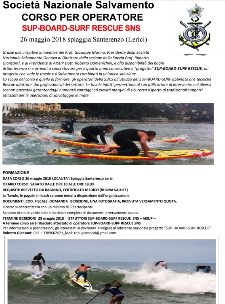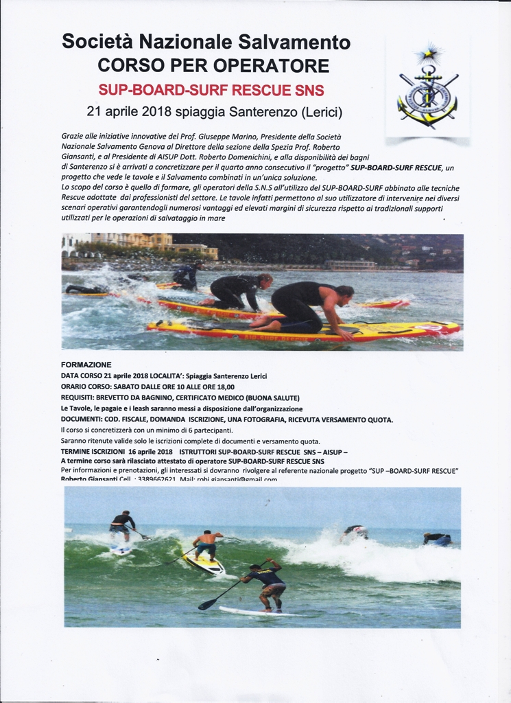 Info corso, iscrizioni e logistica: sig. Alberto Tricarico tel./fax 0882376624, cell. 3200975141, email sez.sansevero@salvamento.it Docenti del corso: Alberto Tricarico.