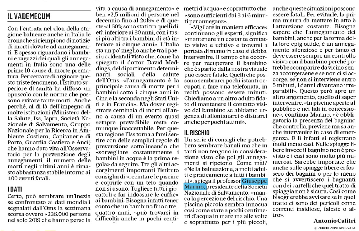 Genova, 15 Luglio 2022 – Riportiamo con piacere l’articolo “Un tuffo al mare ma con giudizio” del Prof. Enzo Pranzini – membro del comitato medico-scientifico della SNS e membro dell’Osservatorio nazionale sull’annegamento costituito presso il Ministero della Salute – pubblicato sul quotidiano “Il Manifesto” il 14/07/2022, nell’inserto “Mare”.