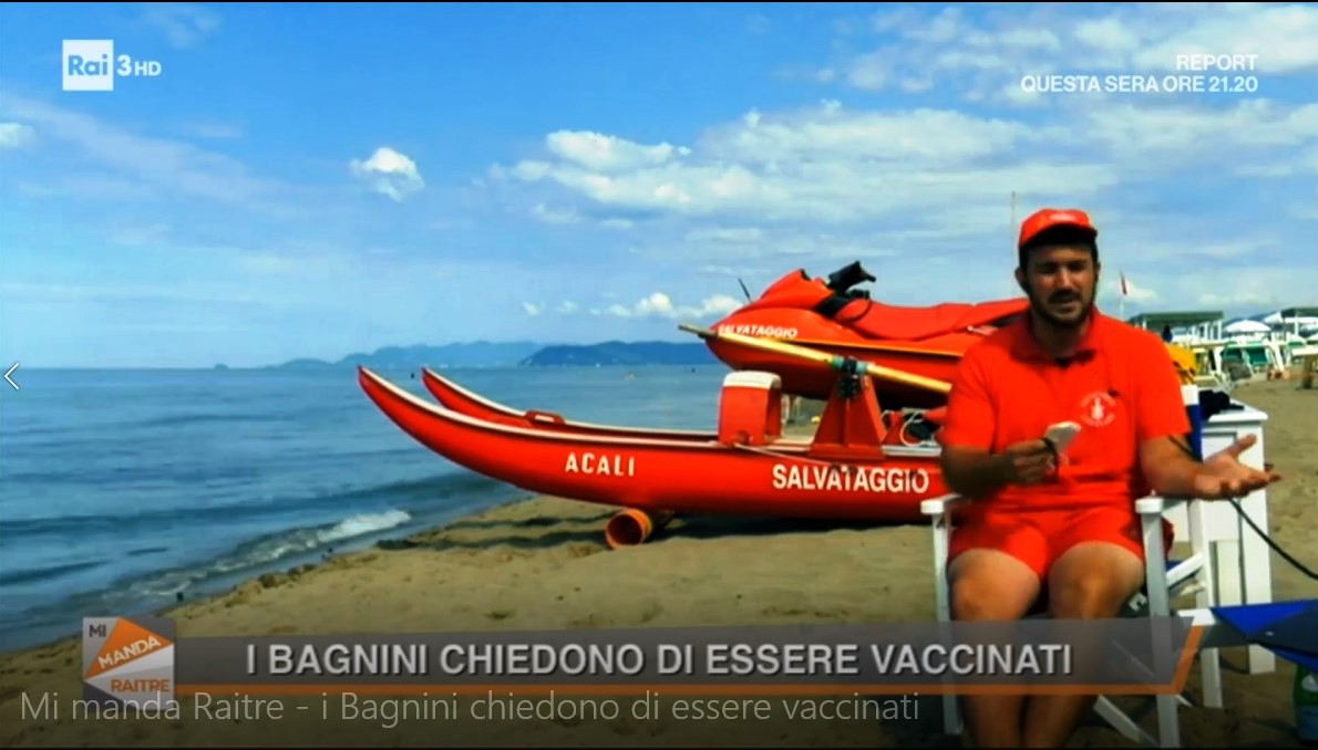 Roma, 31 Luglio 2021 – Nella puntata del 31 Maggio 2021, la storica trasmissione “Mi manda Raitre” – condotta da Lidia Galezzo e Federico Ruffo – ha intervistato Francesco Lari, Bagnino di Salvataggio SNS di Forte dei Marmi: “i Bagnini chiedono di essere vaccinati”.