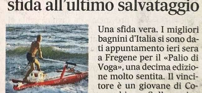 Fregene, 2 Agosto 2023 – Si è svolta Mercoledì 2 Agosto a Fregene (RM) la 10^ edizione del Palio della voga”, manifestazione ormai tradizionale organizzata dalla Società Nazionale di Salvamento Sez. Fregene, diretta da Domenico Putino.  Durante l’evento si sono svolte anche attività con i bambini, rivolte alla prevenzione degli incidenti in mare.