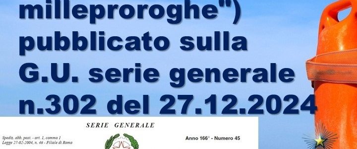 OGGETTO: Conversione in legge del D.L. 27.12.2024, n.202 (cd “decreto milleproroghe”) pubblicato sulla G.U. serie generale n.302 del 27.12.2024.