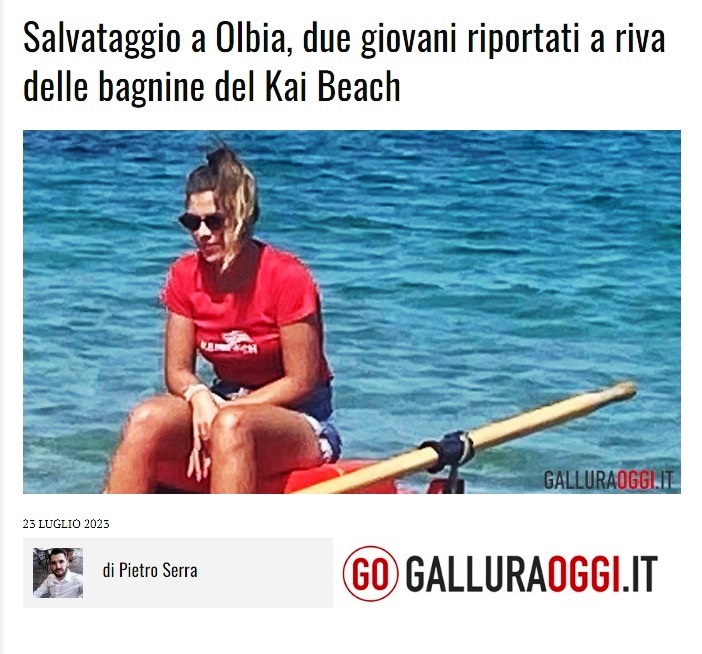 Leggi articolo completo di Pietro Serra pubblicato il 23/07/2023 sul quotidiano online galluraoggi.it Salvataggio a Olbia, due giovani riportati a riva delle bagnine del Kai Beach