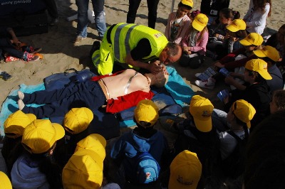 Esercitazione pratica di rianimazione in riva al mare a cura delle Associazioni di Soccorso del territorio.