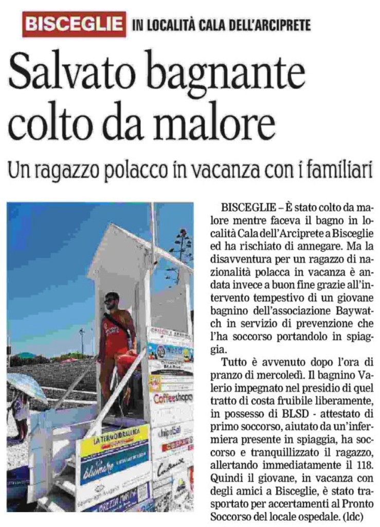 Un’ulteriore conferma, qualora fosse necessaria, della straordinaria utilità del servizio di salvataggio sulle spiagge libere della costa molisana da parte dei bagnini della Società Nazionale di Salvamento Sezione di Guardialfiera, diretta da Nicola Fratangelo.